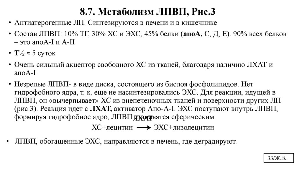 8.5.Метаболизм ЛПОНП. 8.6. Метаболизм ЛПНП. 8.7. Метаболизм ЛПВП.