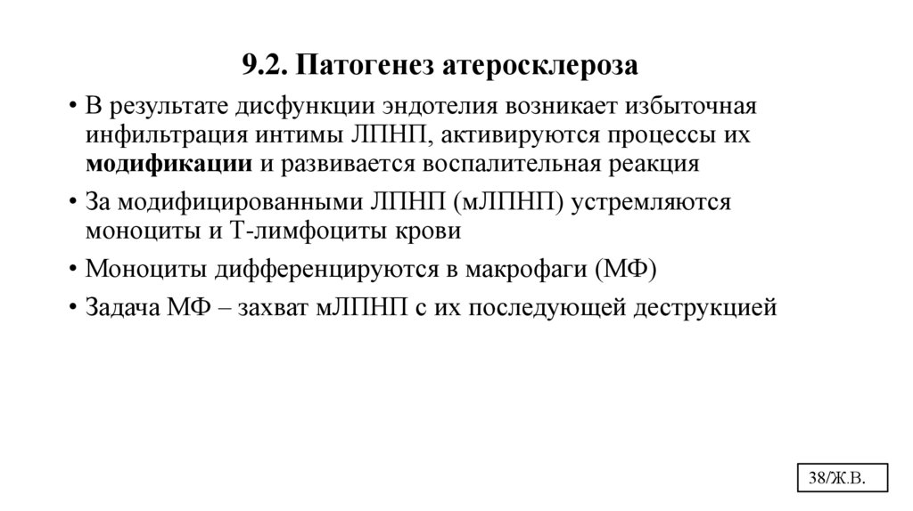 9.Атеросклероз. 9.1.Дисфункция эндотелия. 9.2. Патогенез атеросклероза