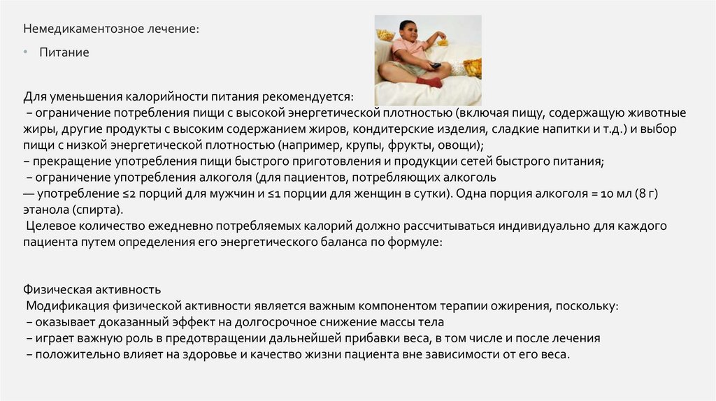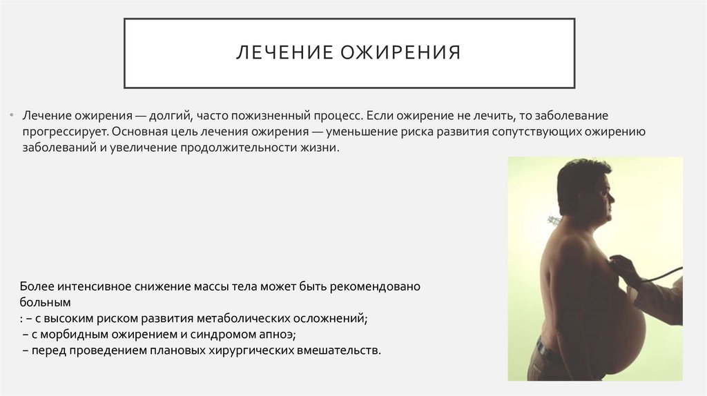 прогрессирует. Основная цель лечения ожирения — уменьшение риска развития сопутствующих ожирению