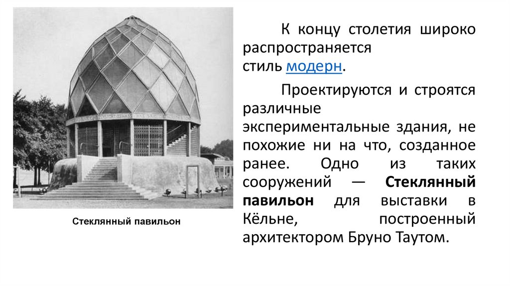 Стеклянный павильонК концу столетия широко