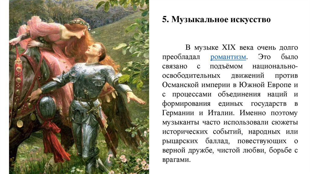 5. Музыкальное искусствоВ музыке XIX века очень долго