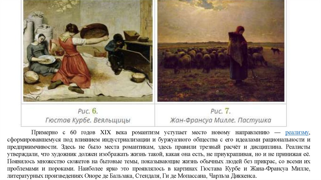 проблемами и пороками. Наиболее ярко это проявлялось в картинах Гюстава Курбе и Жана-Франсуа Милле,