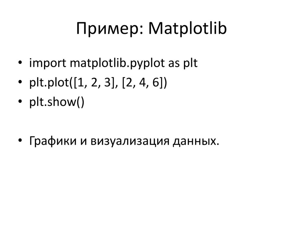 Пример: Matplotlib• import matplotlib.pyplot as plt