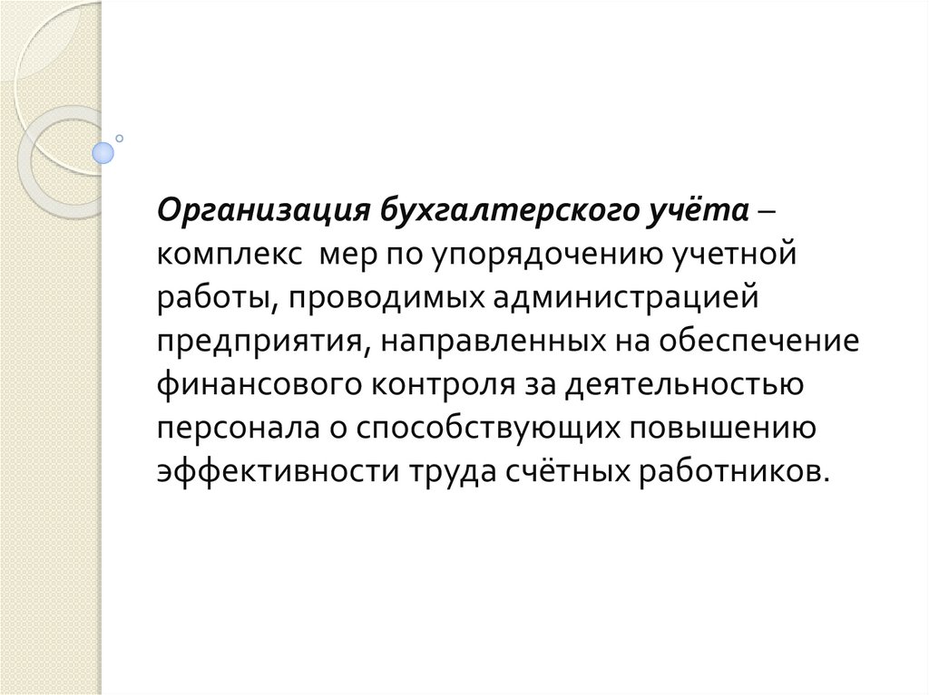 Организация бухгалтерского учёта –комплекс мер по упорядочению учетной