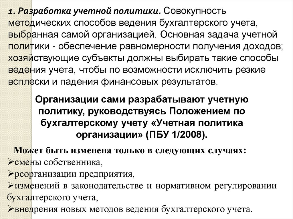 1. Разработка учетной политики. Совокупностьметодических способов ведения бухгалтерского учета,