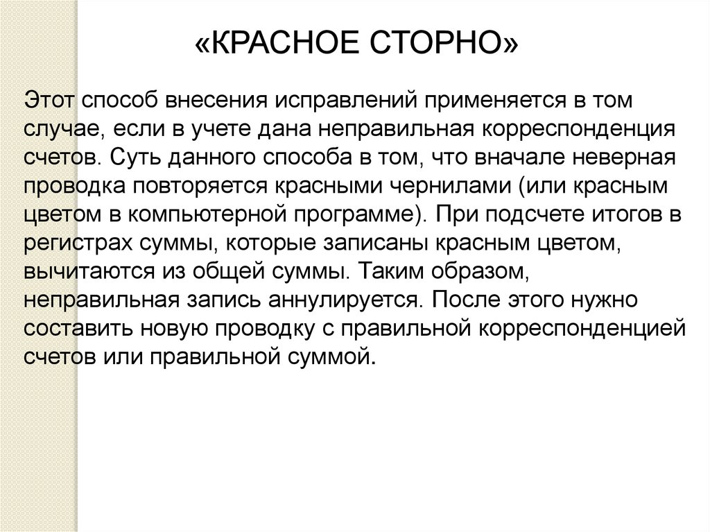 «КРАСНОЕ СТОРНО»Этот способ внесения исправлений применяется в том