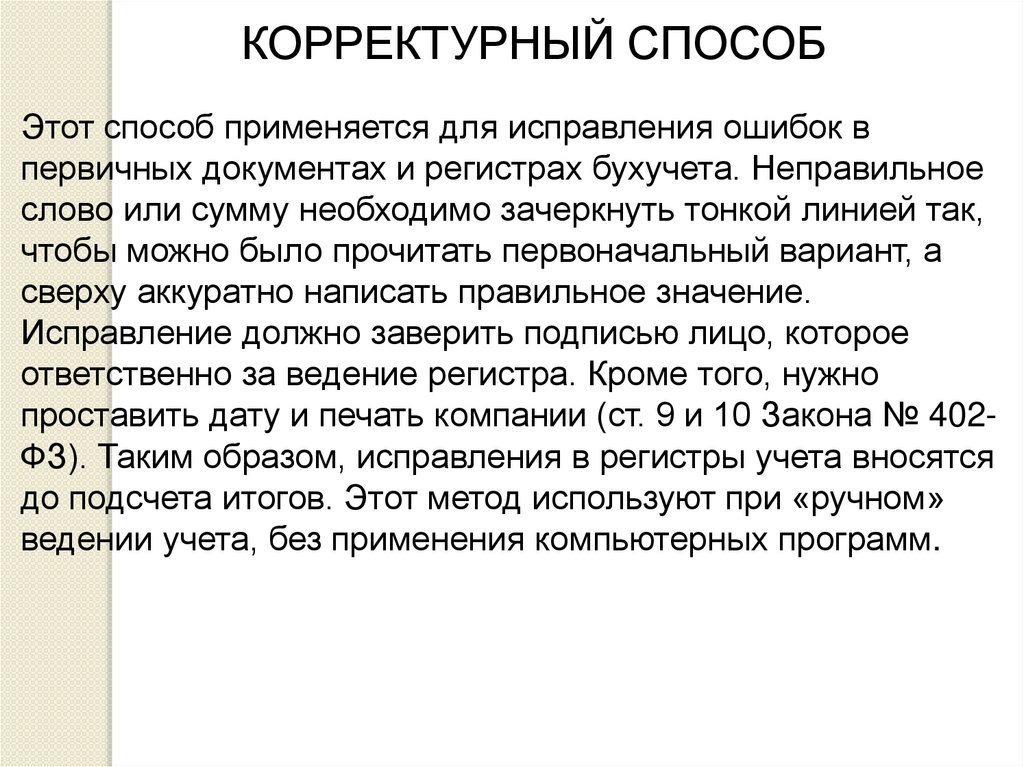 КОРРЕКТУРНЫЙ СПОСОБЭтот способ применяется для исправления ошибок в