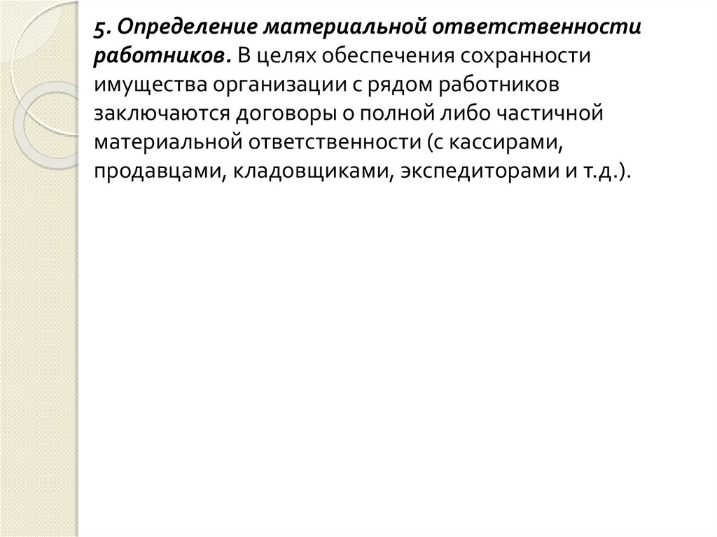 5. Организационно-технический аспект учетной политики включает несколько аспектов: