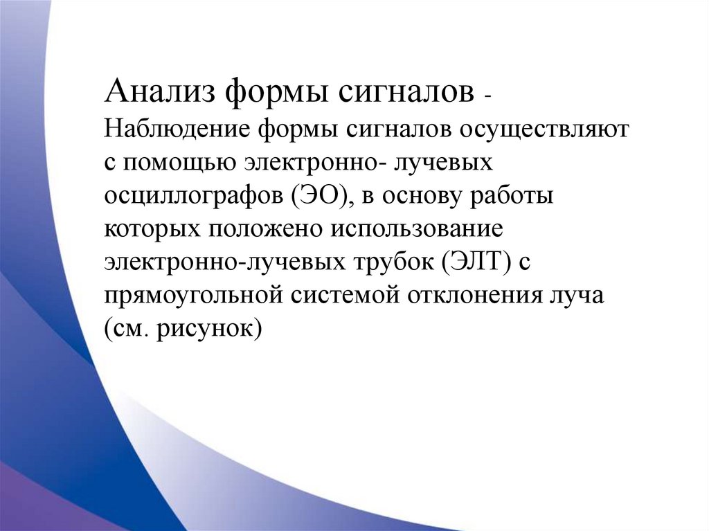 Анализ формы сигналов Наблюдение формы сигналов осуществляютс помощью электронно- лучевых