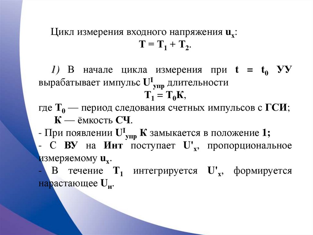 Цикл измерения входного напряжения uх:Т = Т1 + Т2.