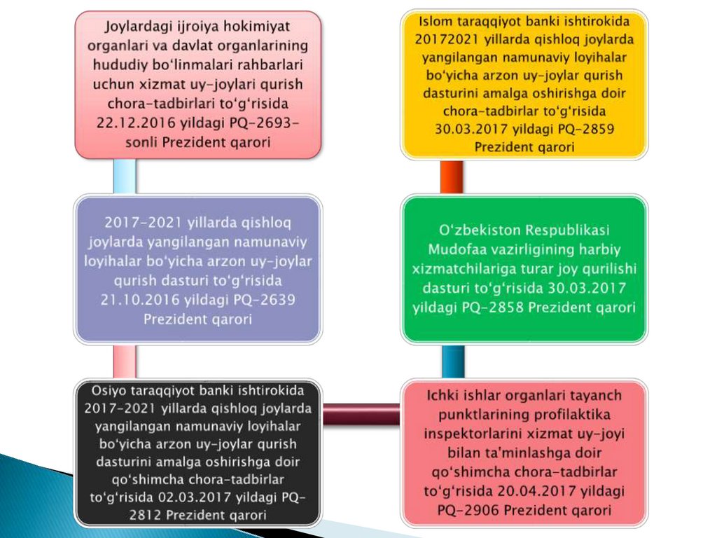 -ko'p honadonli arzon uylar qurilishi bo'yicha davlat dasturlari amalga oshirilishini