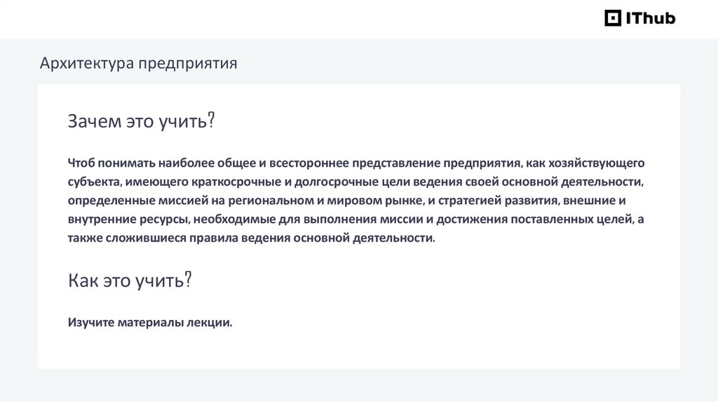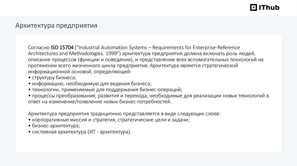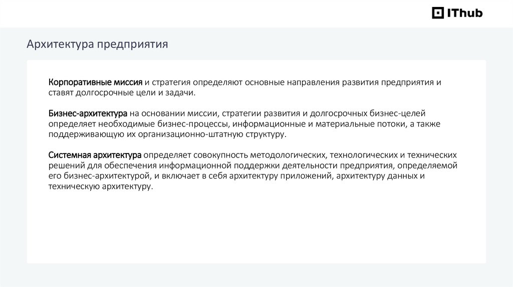 протяжении всего жизненного цикла предприятия. Архитектура является стратегической