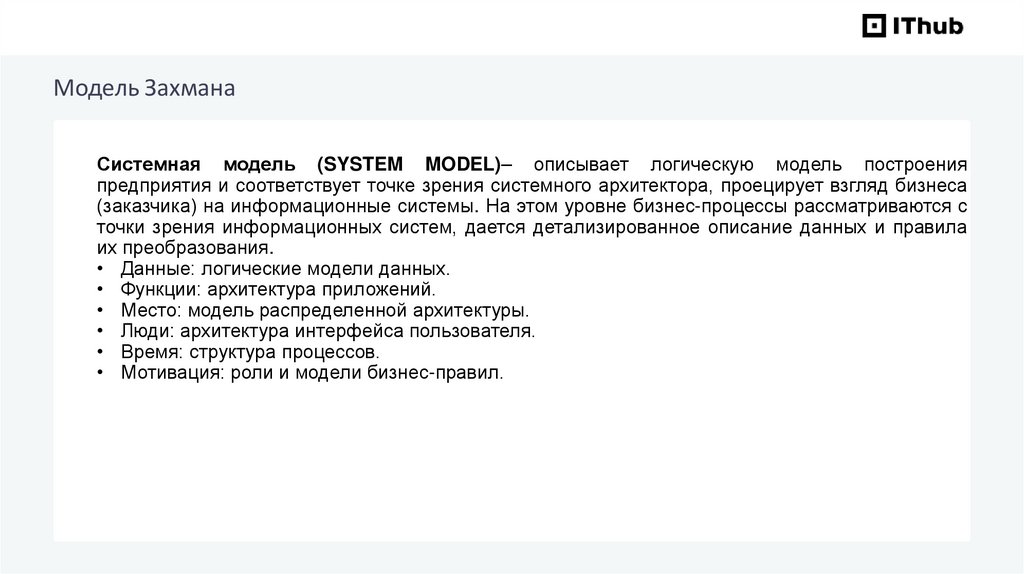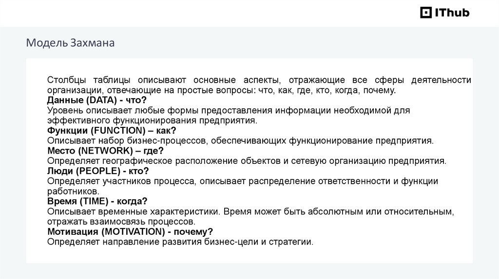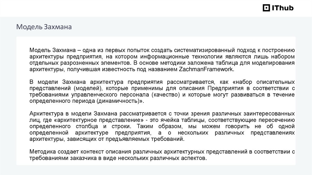 С точки зрения Захмана «путь к эффективным информационным системам требует