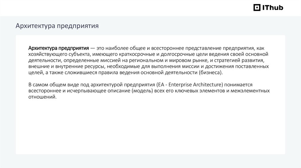 В самом общем виде под архитектурой предприятия (ЕА - Enterprise Architecture) понимается