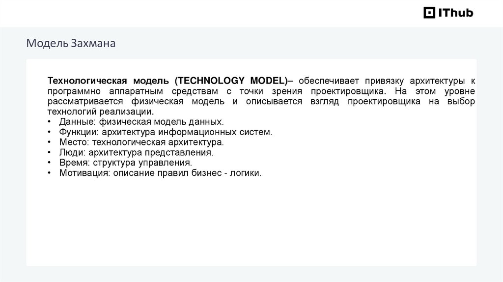 описание процессов (функции и поведение), и представление всех вспомогательных технологий на
