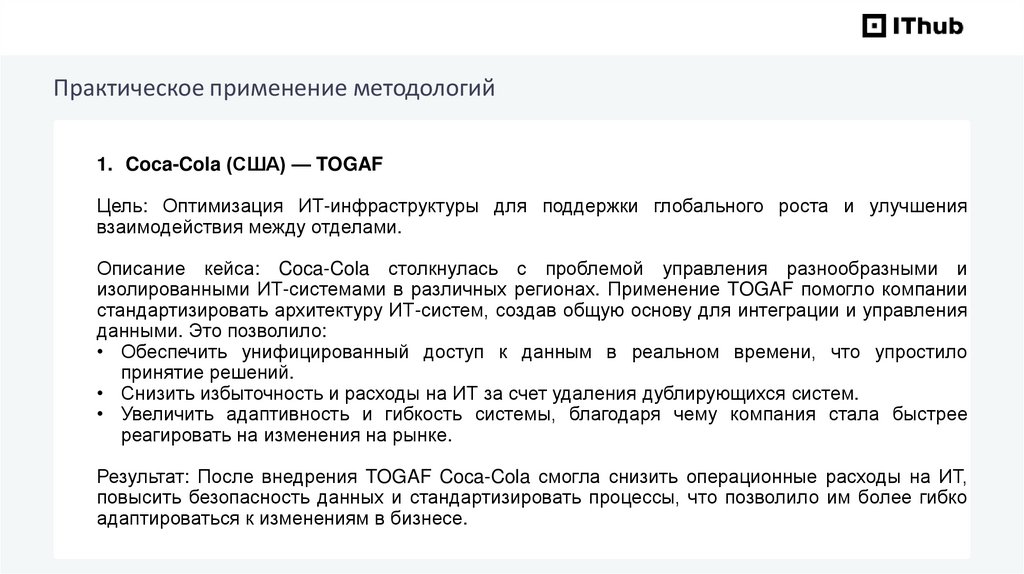 Практическое применение методологий1. Coca-Cola (США) — TOGAF