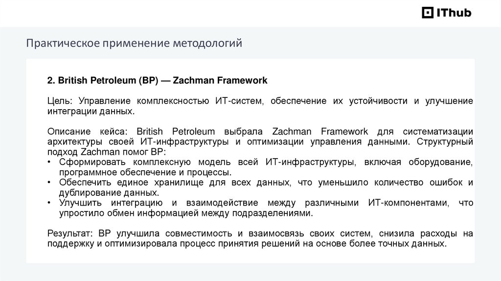 Практическое применение методологий2. British Petroleum (BP) — Zachman Framework