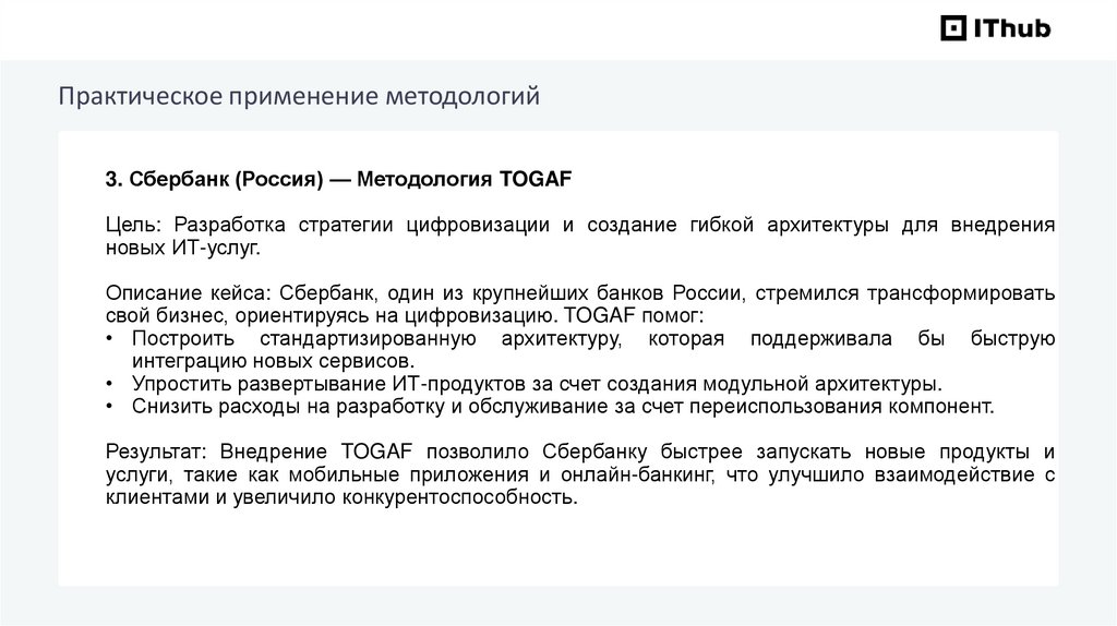 Практическое применение методологий3. Сбербанк (Россия) — Методология TOGAF