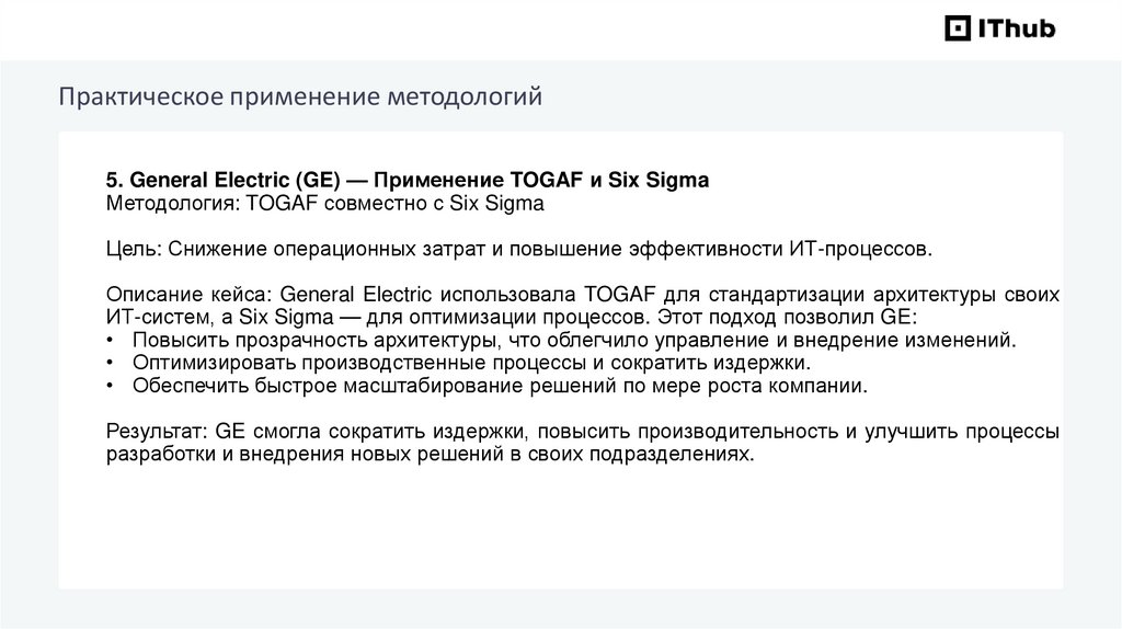 Практическое применение методологий5. General Electric (GE) — Применение TOGAF и Six Sigma