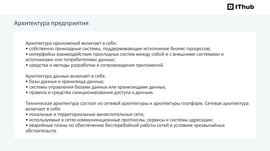 Архитектура предприятияАрхитектура приложений включает в себя: