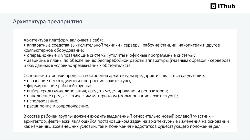 Архитектура предприятияАрхитектура платформ включает в себя: