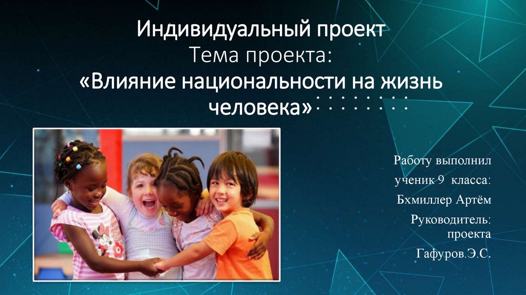 1. Индивидуальный проект Тема проекта: «Влияние национальности на жизнь человека»