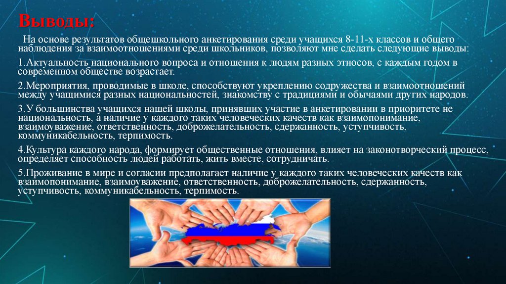 5.Проживание в мире и согласии предполагает наличие у каждого таких человеческих качеств как