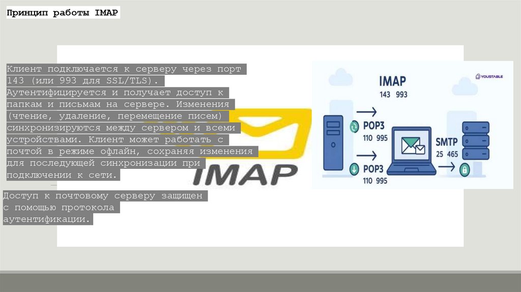 Принцип работы IMAPКлиент подключается к серверу через порт