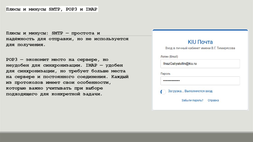 Плюсы и минусы SMTP, POP3 и IMAPПлюсы и минусы: SMTP — простота и