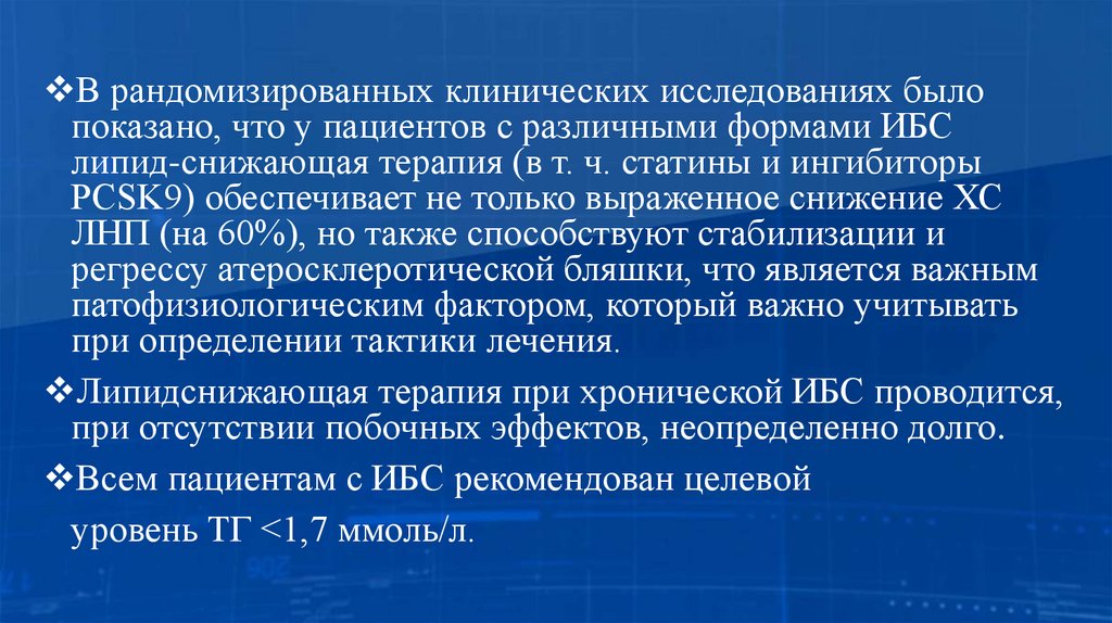 Все пациенты с хронической ИБС относятсяк категории лиц очень высокого риска, поэтому для