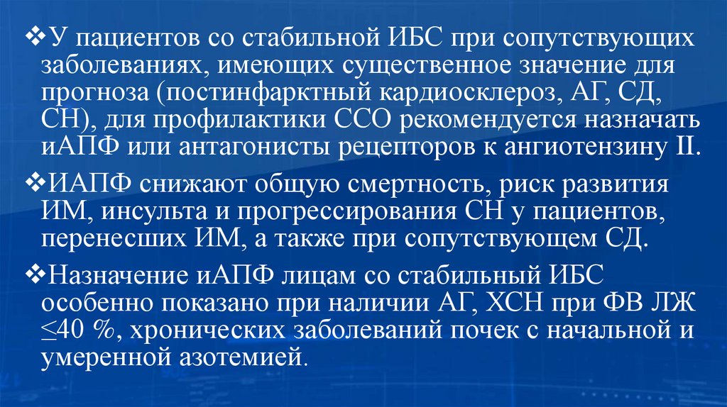 У пациентов со стабильной ИБС при сопутствующихзаболеваниях, имеющих существенное значение для