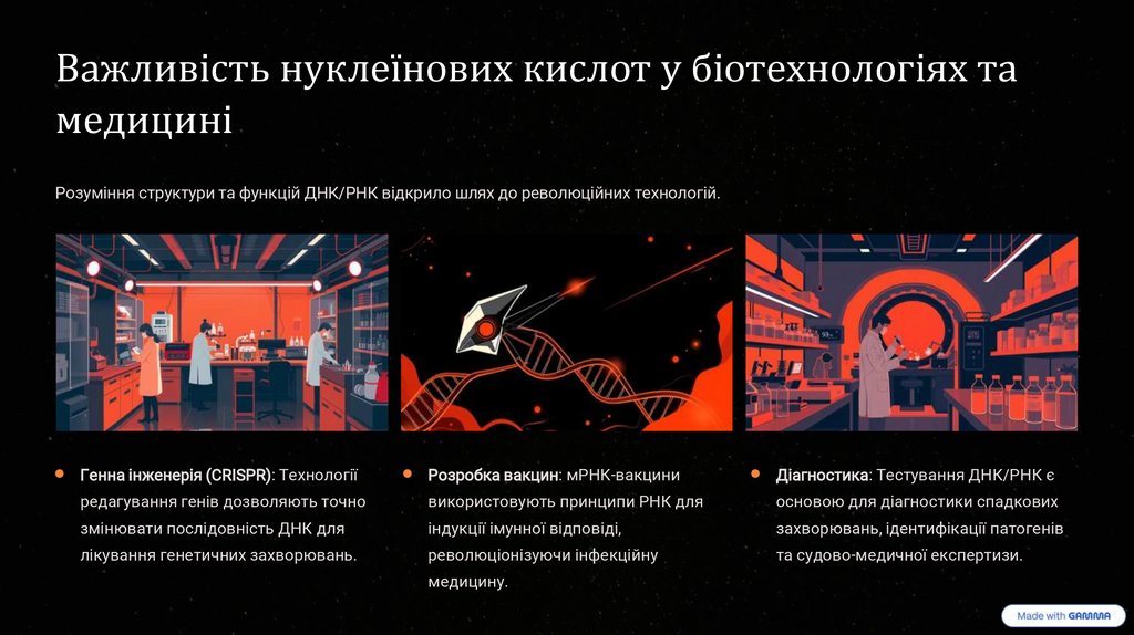 Розуміння структури та функцій ДНК/РНК відкрило шлях до революційних технологій.