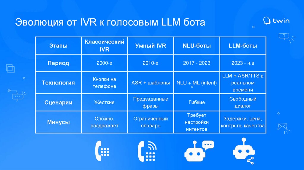 Эволюция от IVR к голосовым LLM ботаЭтапы
