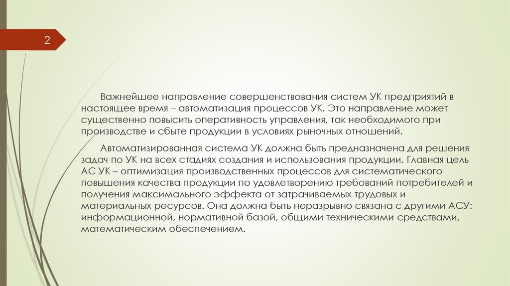 Автоматизированная система УК должна быть предназначена для решения