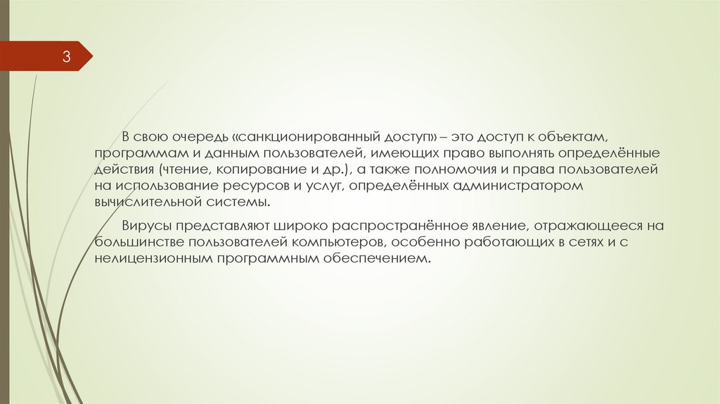 3В свою очередь «санкционированный доступ» – это доступ к объектам,