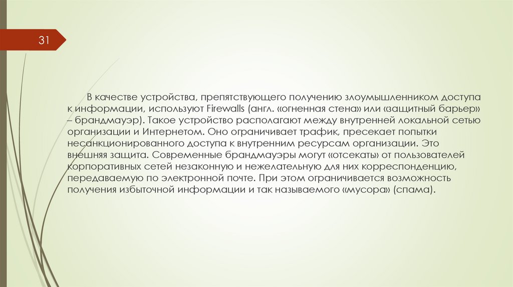 32Другим техническим устройством эффективной защиты в компьютерных сетях