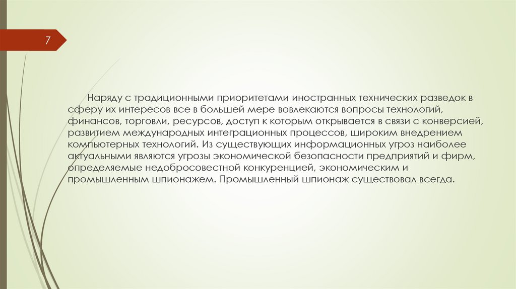 7Наряду с традиционными приоритетами иностранных технических разведок в