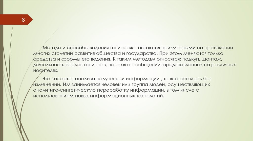 8Методы и способы ведения шпионажа остаются неизменными на протяжении