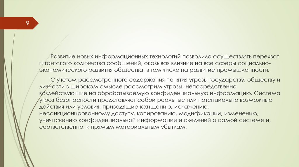 9Развитие новых информационных технологий позволило осуществлять перехват
