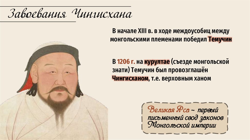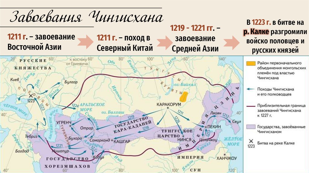 Завоевания ЧингисханаВ начале XIII в. в ходе междоусобиц между