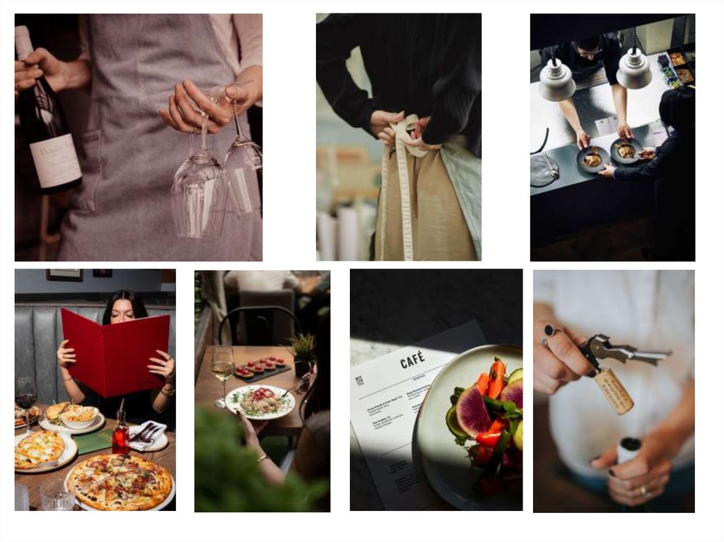 Блюда, Официант, девушка (для фото деталей), телефон,