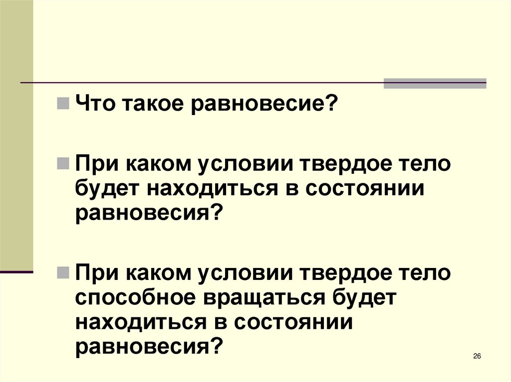 Что такое равновесие?При каком условии твердое тело