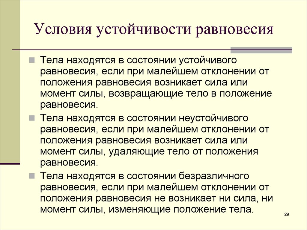 Условия устойчивости равновесия30