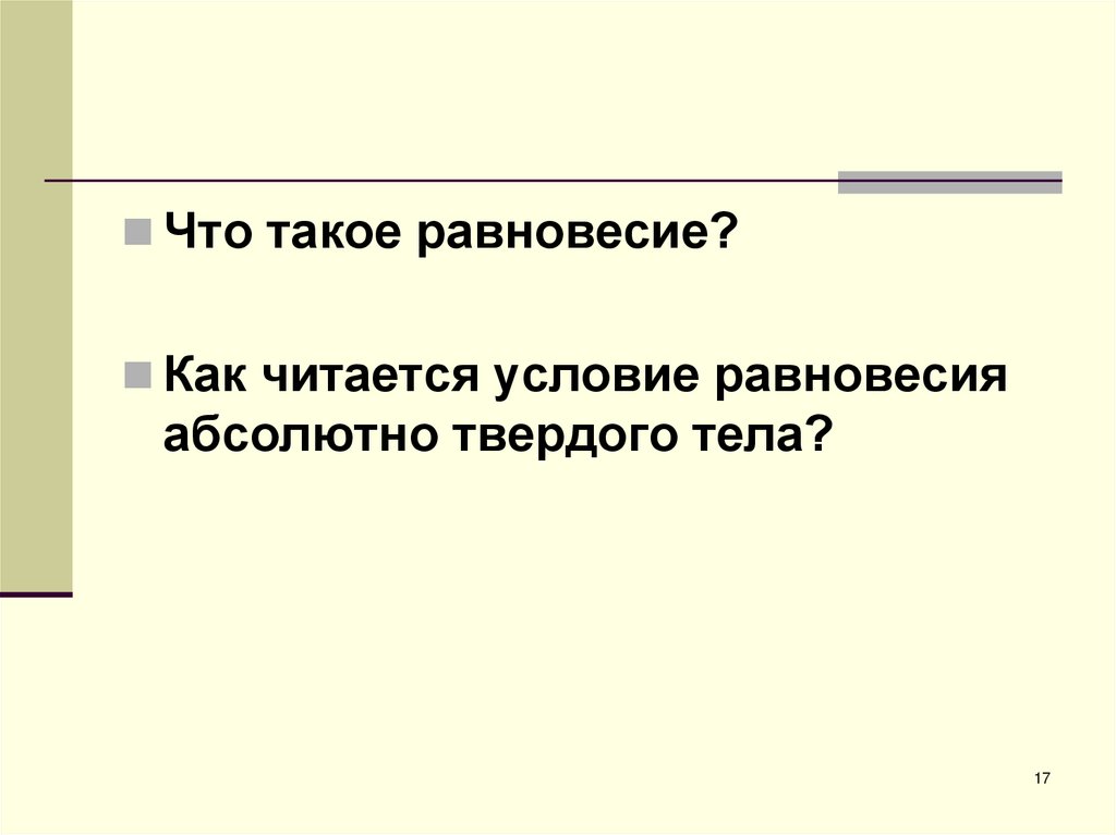 Что такое равновесие?Как читается условие равновесия