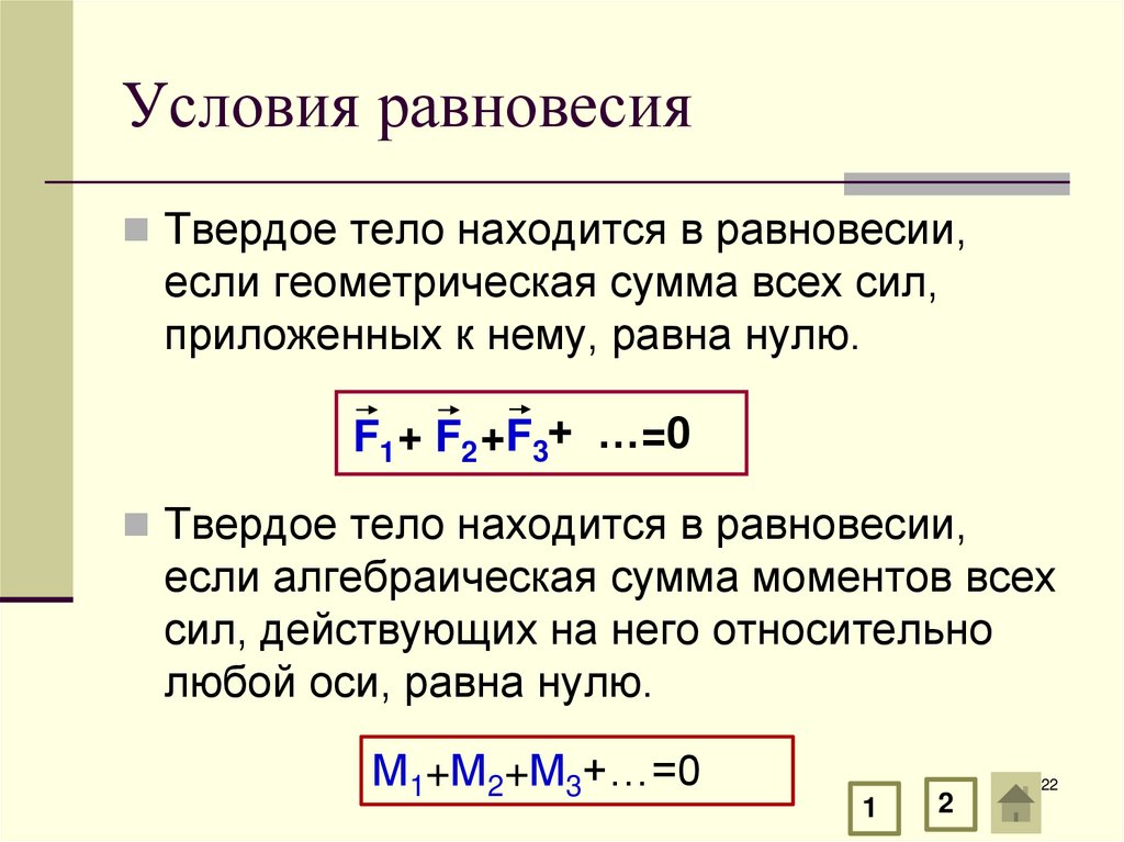Условия равновесияТвердое тело находится в равновесии,