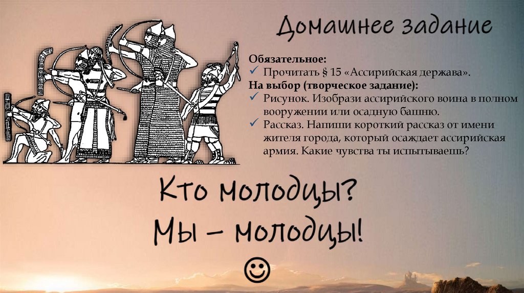 Обязательное:Прочитать § 15 «Ассирийская держава».