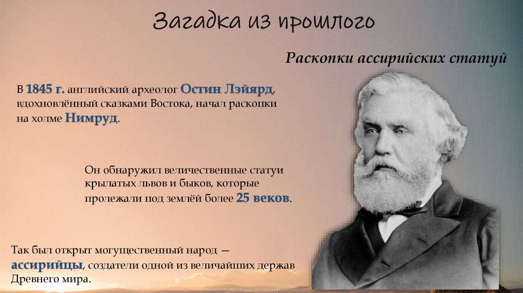 Раскопки ассирийских статуйВ 1845 г. английский археолог Остин Лэйярд,