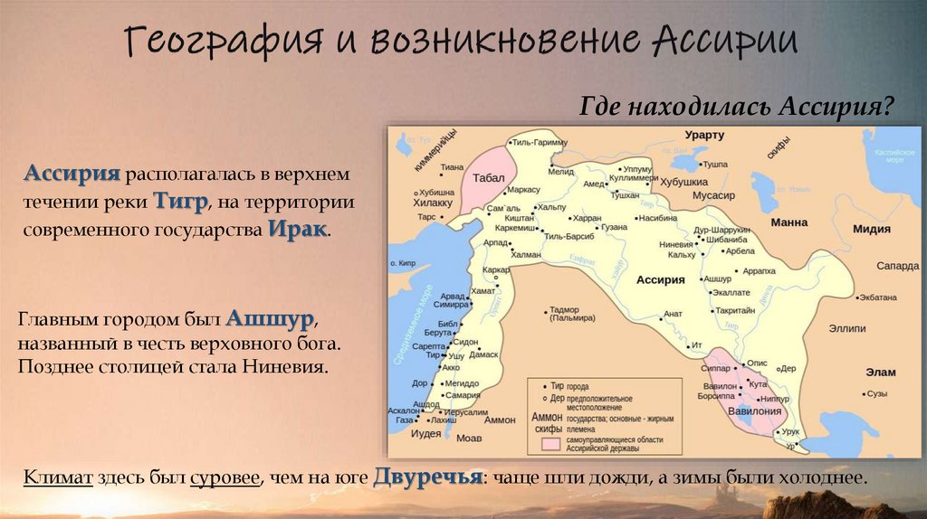 Где находилась Ассирия?Ассирия располагалась в верхнем