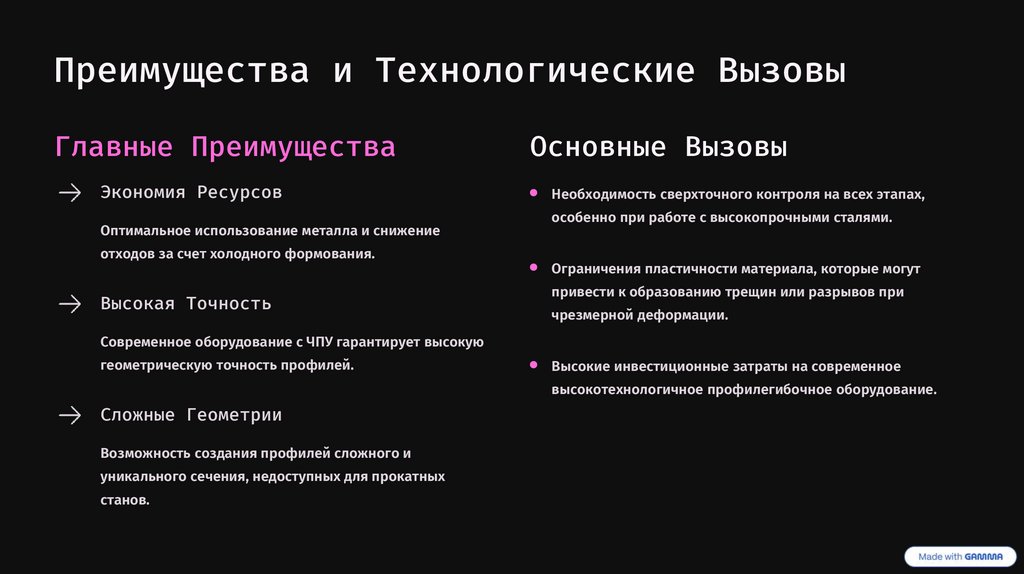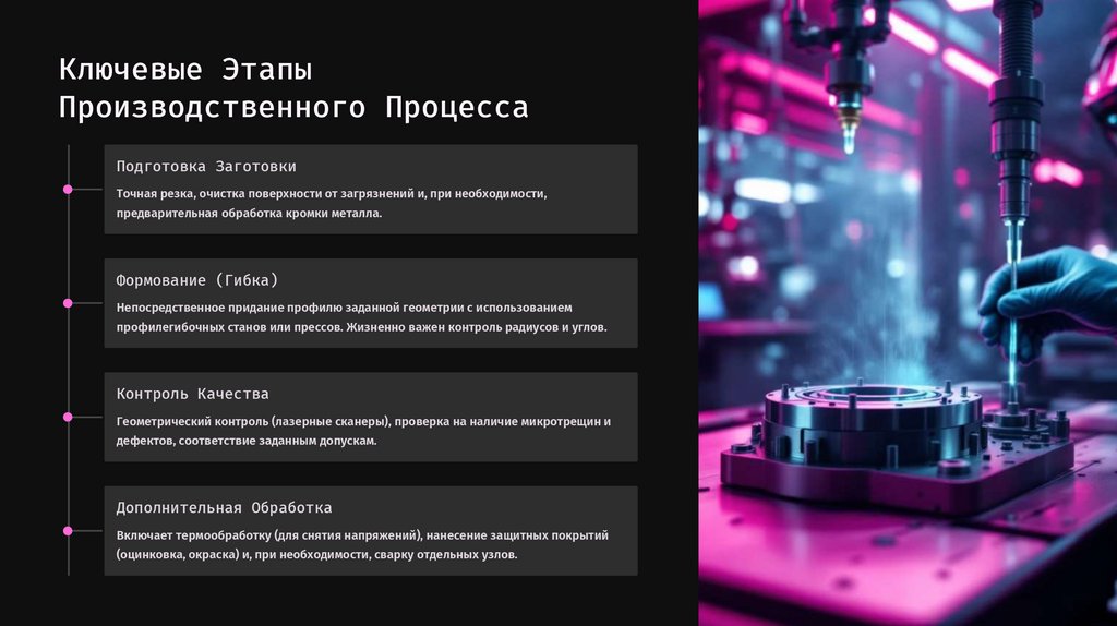 профилегибочных станов или прессов. Жизненно важен контроль радиусов и углов.