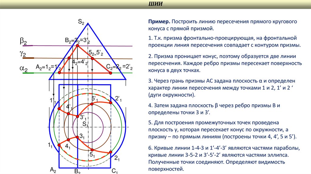 характер линии пересечения между точками 1 и 2, 1’ и 2 ‘